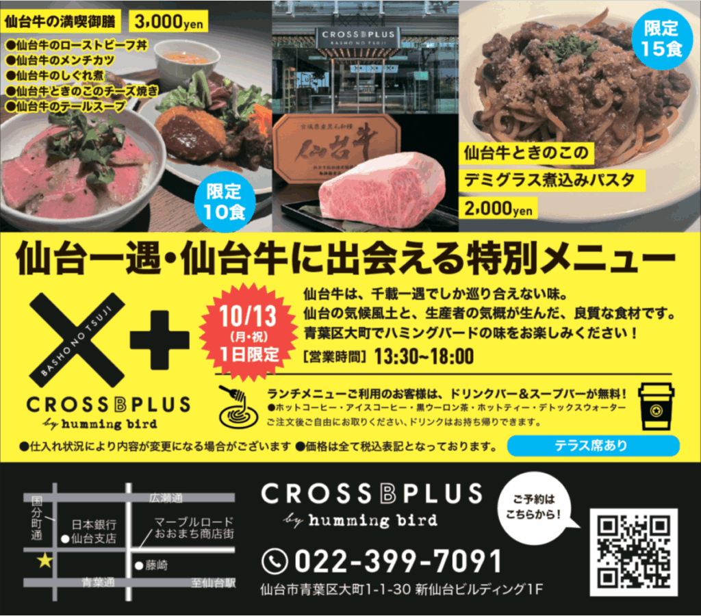 CROSS B PLUSで、この日限りの特別メニューをぜひご賞味ください♪